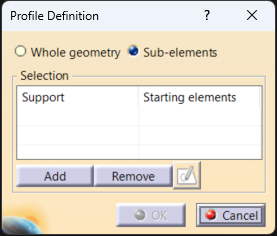 Sub-elements: 스케치 안에서 연결되어 있는 요소들을 별도로 선택 (아래 그림 참조)