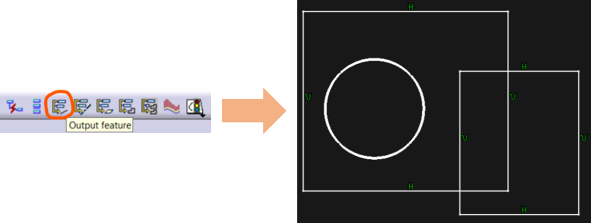1) 스케치에서 필요한 요소를 Output feature로 설정