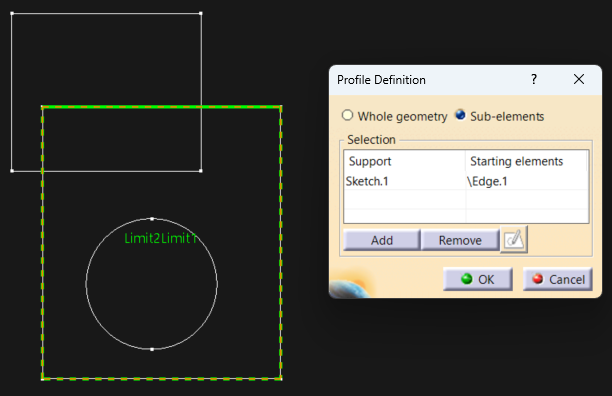 예를 들어 이런 스케치가 있을 때 Pad를 하면서 일부 profile을 부분적으로 선택할 수 있을까요?